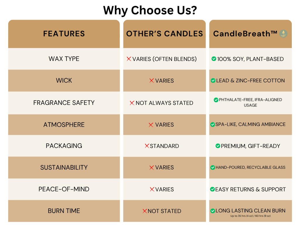 Hand-poured with 100% soy wax, eco-friendly cotton wick, and toxin-free ingredients. No parabens, no phthalates - just pure comfort in a jar.